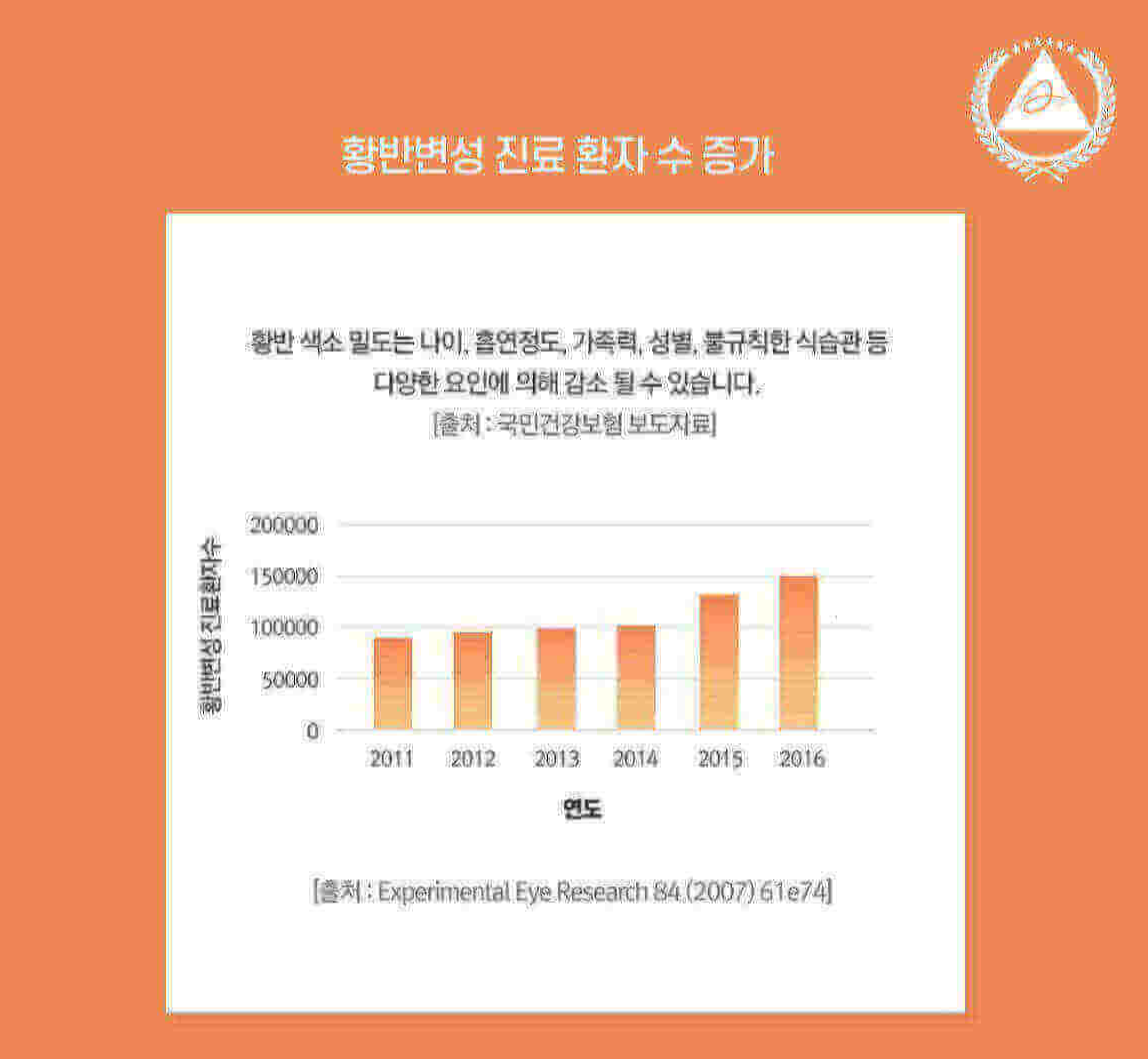 눈 건강을 잘 알기 위해서 황반에 대한 이해가 필요한데요. 황반은 물체를 선명하게 보는 신경조직으로 우리가 볼 수 있는 기능의 90%를 담당하고 있습니다. 이 황반의 구성 색소가 루테인과 지아잔틴인데 몸에서 만들어지지 않으니 섭취를 해줘야 하는 것입니다. 나이가 들수록 황반 색소 밀도가 감소하고 이렇게 낮아진 황반 색소는 우리 몸에서 스스로 합성이 안되고 또한 한번 손상되면 회복이 어렵다고 하니 눈이 건강할 때 미리 챙겨줘야겠습니다.